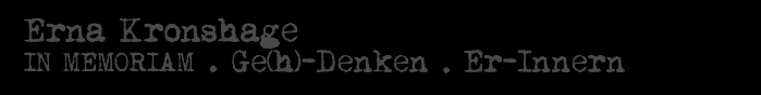 Erna Kronshage . E-Papers . E-Book . Videos . IN MEMORIAM . NS-"Euthanasie" | Bluesky | Impressum . Über mich . sinedi@rt