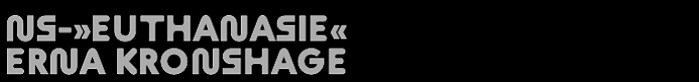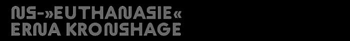 Diese Website skizziert zunächst die Opferbiografie meiner Tante Erna Kronshage (geboren 1922), die im Februar 1944 im Zuge solcher Willkür-Maßnahmen in einer NS-Tötungsanstalt im besetzten Polen heimtückisch ermordet wird.