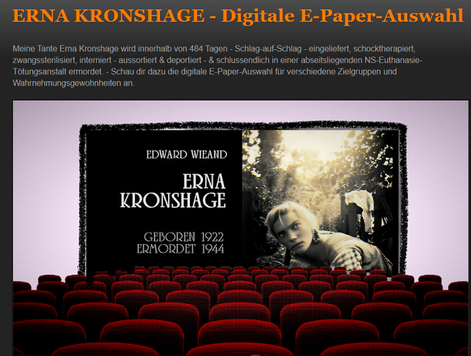 Edward Wieand: ERNA KRONSHAGE . Geboren 1922 - Ermordet 1944 . Mein Lachen ist Weinen . E-Book, umfassende Doku-, Text- & Bild-Collage in 26 Abschnitten - als permanente