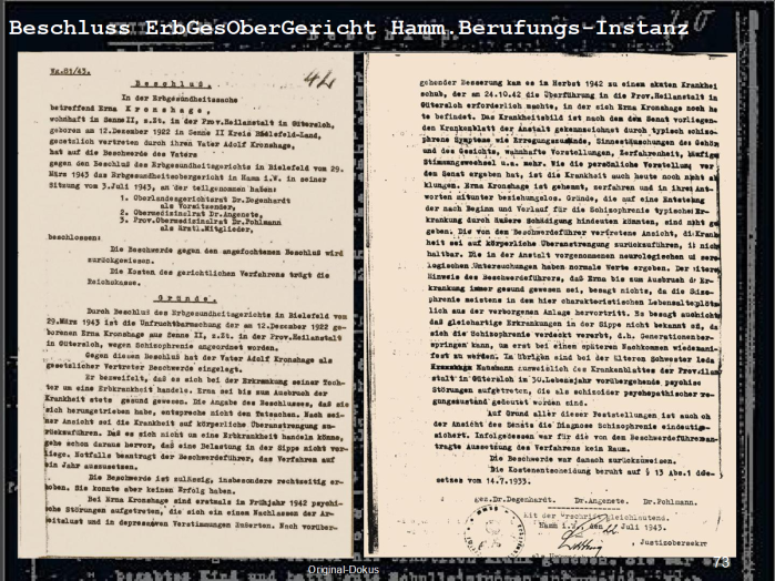Die Beschlüsse zu Erna Kronshages Zwangssterilisation 1943