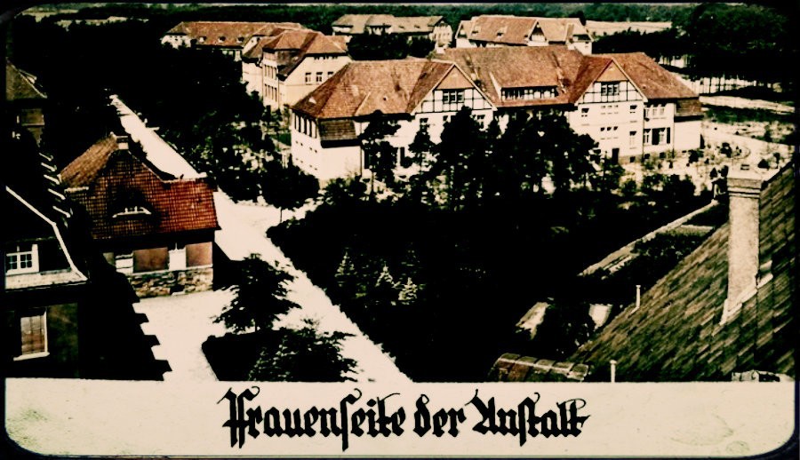 "Während der Zeit des Nationalsozialismus wurde ab 1936 die Fürsorge für Psychisch Kranke und Geistigbehinderte auf die nationalsozialistische Rassenhygiene ausgerichtet. In den Jahren 1940 bis 1943 wurden 1.017 Patienten als 'gänzlich gemeinschafts- und arbeitsunfähig' eingestuft und in Tötungsanstalten deportiert. Im Jahr 2014 wurde eine Gedenkstätte für die Opfer eingeweiht."