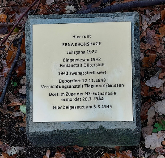 wird der Leichnam Erna Kronshages von Gnesen/Gniezno im damals besetzten Polen nach Senne II rücküberführt.